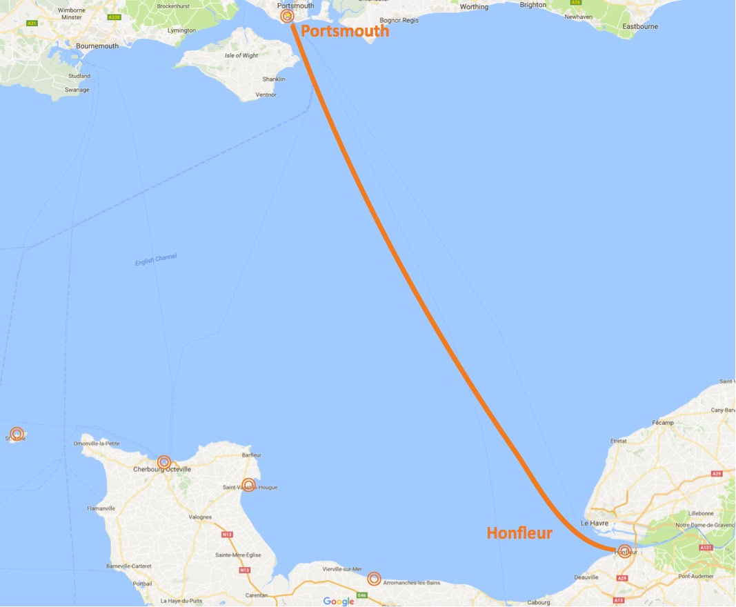 This crossing is similar in duration to Honfleur as it favours a beam reach with the prevailing southwesterlies we tend to experience. However, it avoids the long run up the Chenal de Rouen at the end of the crossing.